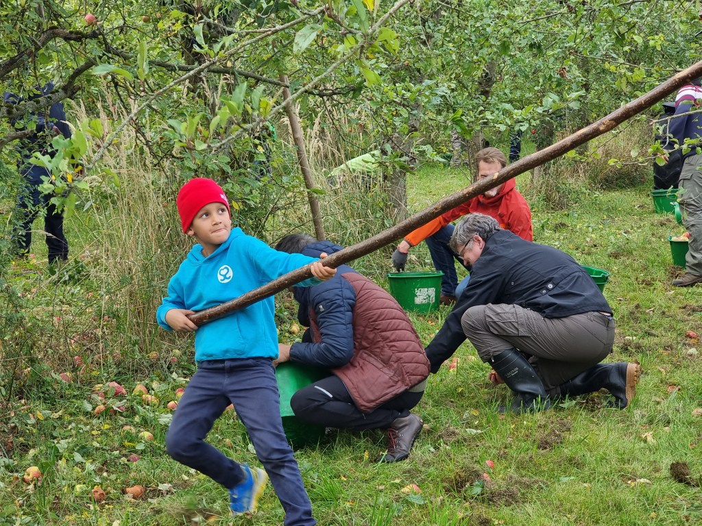Samuel and the Team, picking Apples